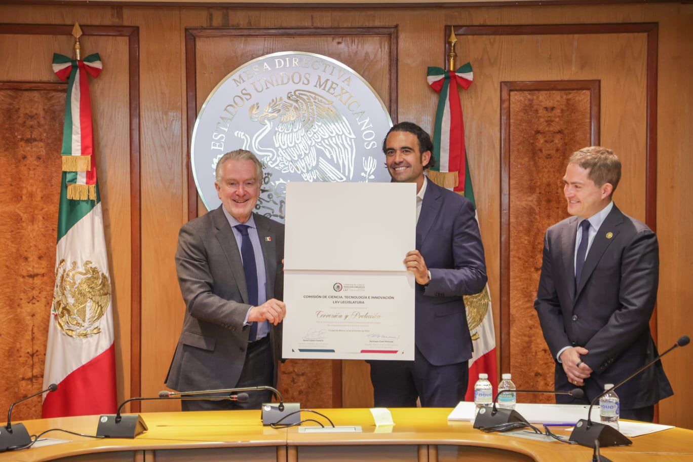 Our commitment to innovation has earned us significant recognition. We were honored with a prestigious national award presented by President of the Mexican House of Representatives, Santiago Creel, together with Javier Lopez Casarin, President of the Commission for Science, Technology, and Innovation, for our outstanding work in environmental protection and sustainable infrastructures.